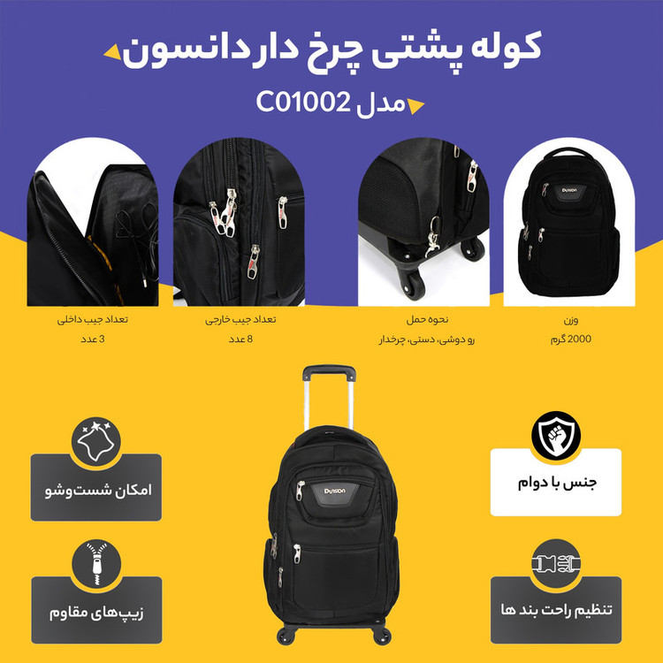 کوله های مسافرتی چرخ جداشو و چهار چرخ مناسب برای سفر و داخل پرواز قابل شستشو وضد اب دارای جای لپ تاپ 17 اینچی